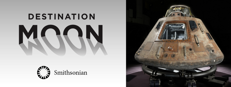 A traveling exhibit by Smithsonian of Apollo 11 which celebrated 50 years since the mission. It was called Destination Moon, and toured the country from 2018-2019. Next to the exhibit name is the command module Columbia, which was one of the most important parts of the exhibit. The exhibit will now be permanent at the National Air and Space Museum in Washington D.C. https://www.airspacemag.com/daily-planet/apollo-11-artifacts-go-tour-180962247/. Accessed 30 Jan. 2020.
